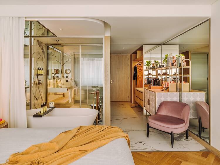 There are 213 rooms at ME Lisbon, with a whopping 12 different types to choose from – we stayed in an expansive Beyond ME+ Suite Street View which overlooked Avenue António Augusto de Aguiar and bragged a walk-in dressing area with shedloads of storage, a bar and mini fridge, living space and Smart TV, plus a bedroom area and a vast and luxurious en suite.