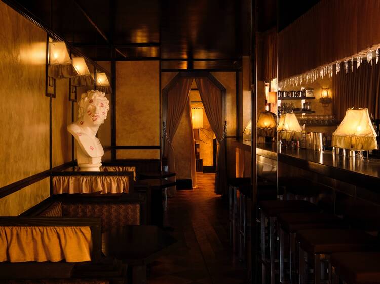 Wander even further into the warren-like venue – past a small ‘library’ stocked with erotic coffee table books – and you’ll find a cabaret space with a curved stage, where east London’s most outré drag acts keep guests entertained with weeknight cabaret shows catered by regularly-rotating chef pop-ups. Venture downstairs and you’ll discover a subterranean sweat box where DJs play on weekends, as well as a second bar and some really quite fabulous loos.