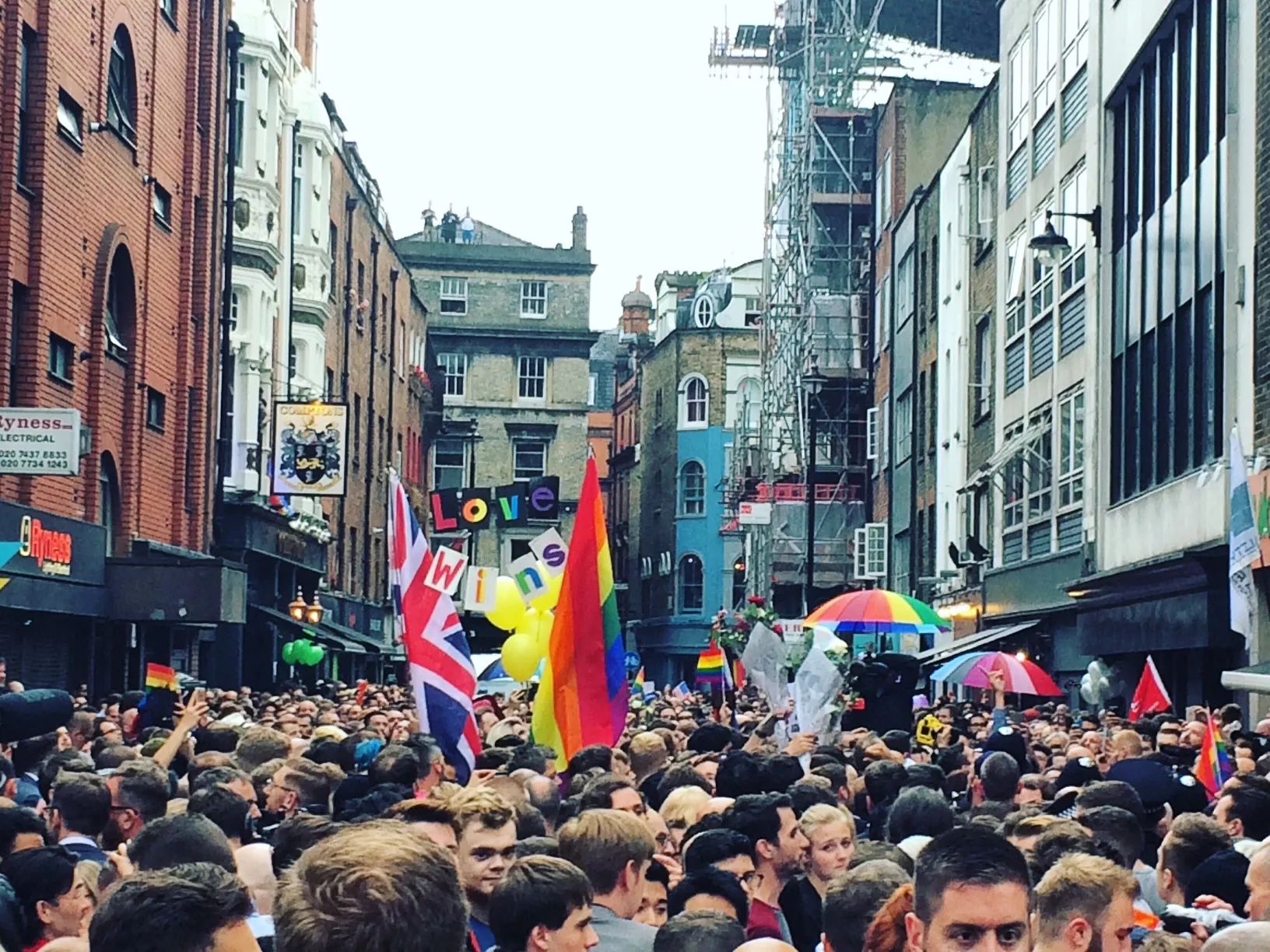 Thousands of people had squeezed on to Old Compton Street to pay tribute to the 49 killed and 53 injured in Orlando gay club Pulse. And as we paid our respects, all you could see was a sea of people, rainbow flags and most-powerfully a sign reading 'love wins' held high above the crowd.