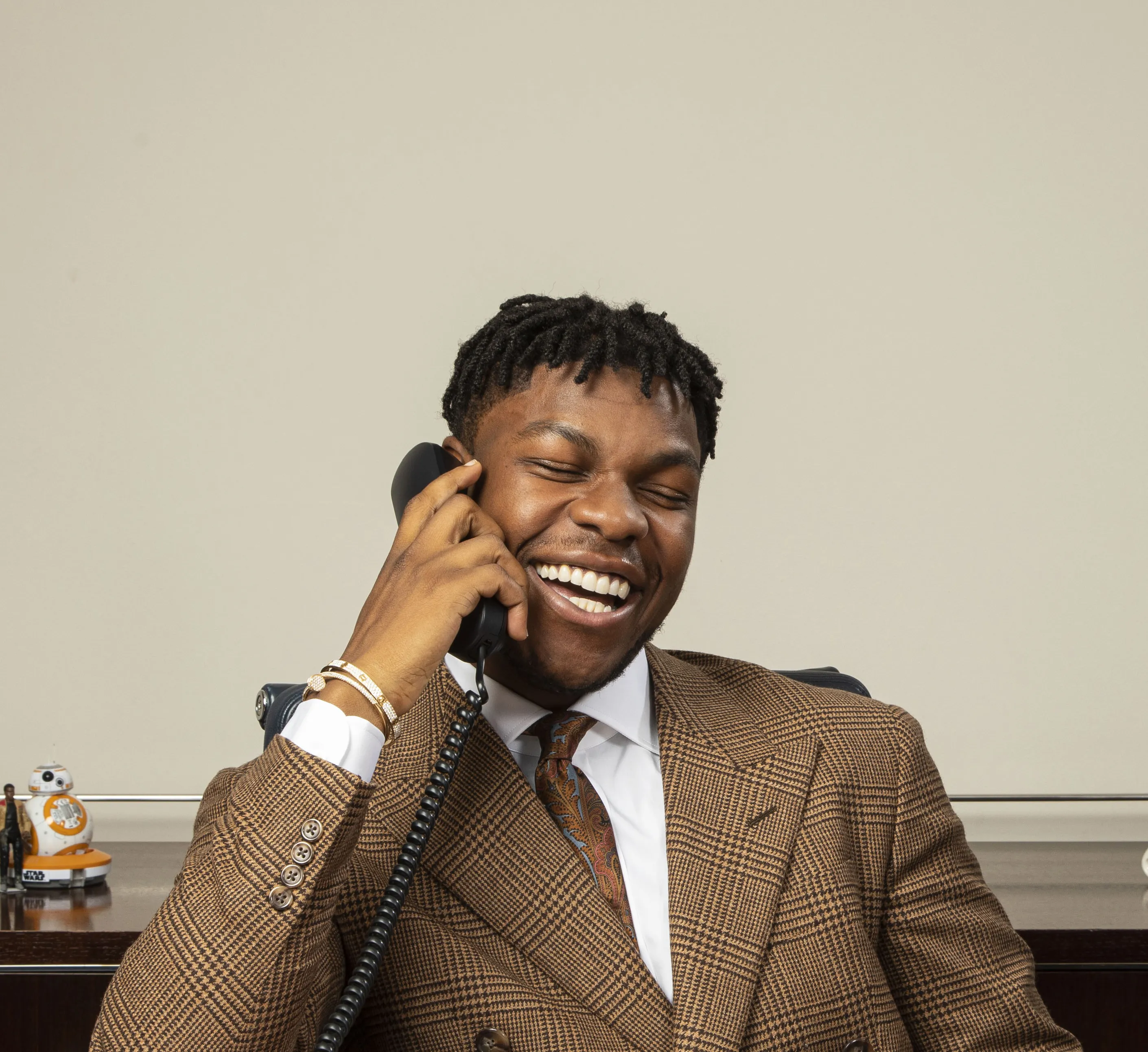 Sharp suit, gigantic grin, infectious sense of fun: you know when Time Out’s guest editor, John Boyega, is in the room. The Peckham boy-turned-galactic superstar is a natural in the editor’s chair, with his feet up on the desk, flicking through layouts, and he has everyone hooting with laughter. A second-generation Nigerian immigrant, Boyega grew up on a Peckham housing estate, the son of a minister and a care worker. His story is a quintessentially London one. And the city’s arts and community organisations have contributed colossally to his success. Years before he was tapped up for ‘Star Wars’ as its most relatable new hero, Finn, he was seizing the city’s opportunities: training at Theatre Peckham; performing and taking in shows at Shakespeare’s Globe, the Royal Albert Hall, the Roundhouse, the Young Vic. All world-class stages; all deeply rooted in London.