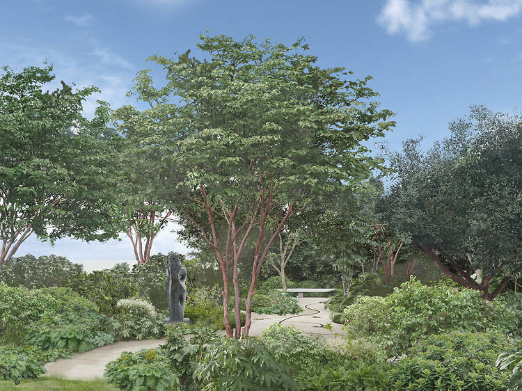 Hepworth’s structure will be nestled within a lush oasis of leopard plants, magnolia flowers and pomegranate and fig trees, giving off serious Garden of Eden vibes.