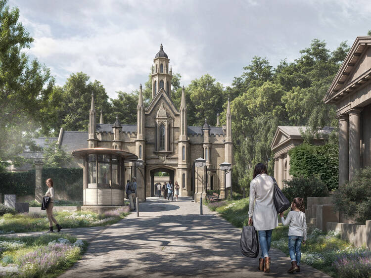 Highgate Cemetery’s iconic main entrance will be restored, and six new buildings will also be created including a café and education centre. There are also grand plans to preserve the Egyptian Avenue and Terrace Catacombs, which are both Grade I-listed landmarks. Hopkins Architects will be overseeing the complex project.