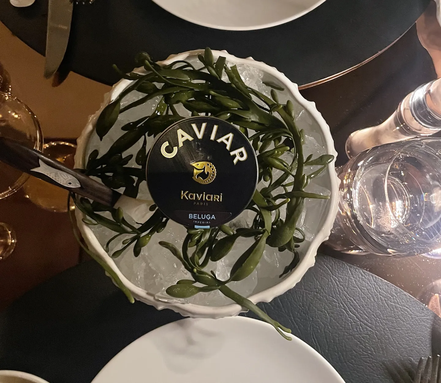 Back in the dining room, our starters arrive. Fittingly immense, there are spicy tuna tartare cones in a crispy, sesame miso tuile (a direct lift from the menu at Spago), as well as chunky prawn spring rolls with a spiced honey dip, and steak tartare bites with whopping great big black truffle shavings. Oh and caviar. This is big, blow-out dining that makes no apologies for the gargantuan size of its flavours.
