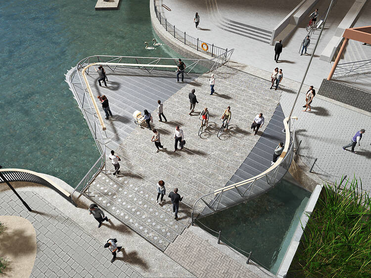 Its new designs broaden the bridge significantly, with leaning rails and ‘amenity space’ allowing people to pause at the water’s edge. A see-through grill will divide this space from the main walkway, meaning you’ll still be able to race across in a rush.