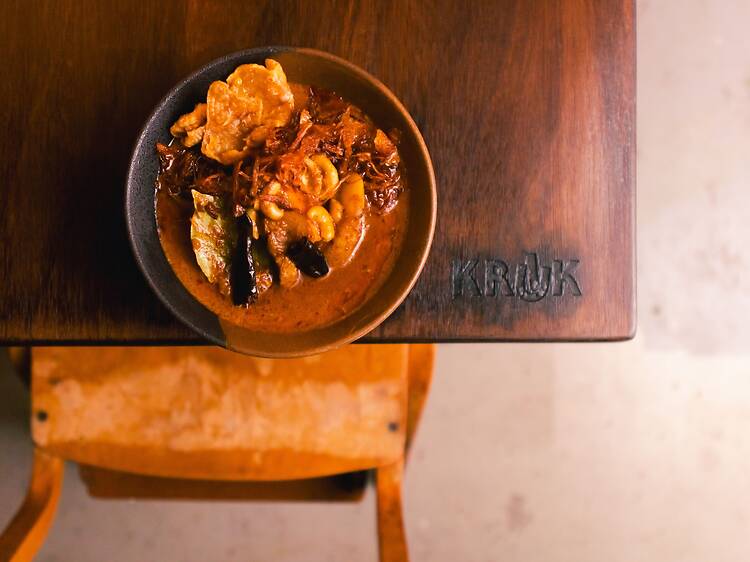 There’s been an effective Thai cookery feedback loop operating in London for the past decade, with chefs bounding off a training ground that normally starts at Spitalfields’ Som Saa or Peckham’s Begging Bowl. And so it goes with Kruk, with Rob Willcox and Josh Lyons embarking on their own take on fresh and fiery southeast Asian flavours after back-and-front-of-house stints at both, as well as at Farang and Plaza Khao Gaeng.