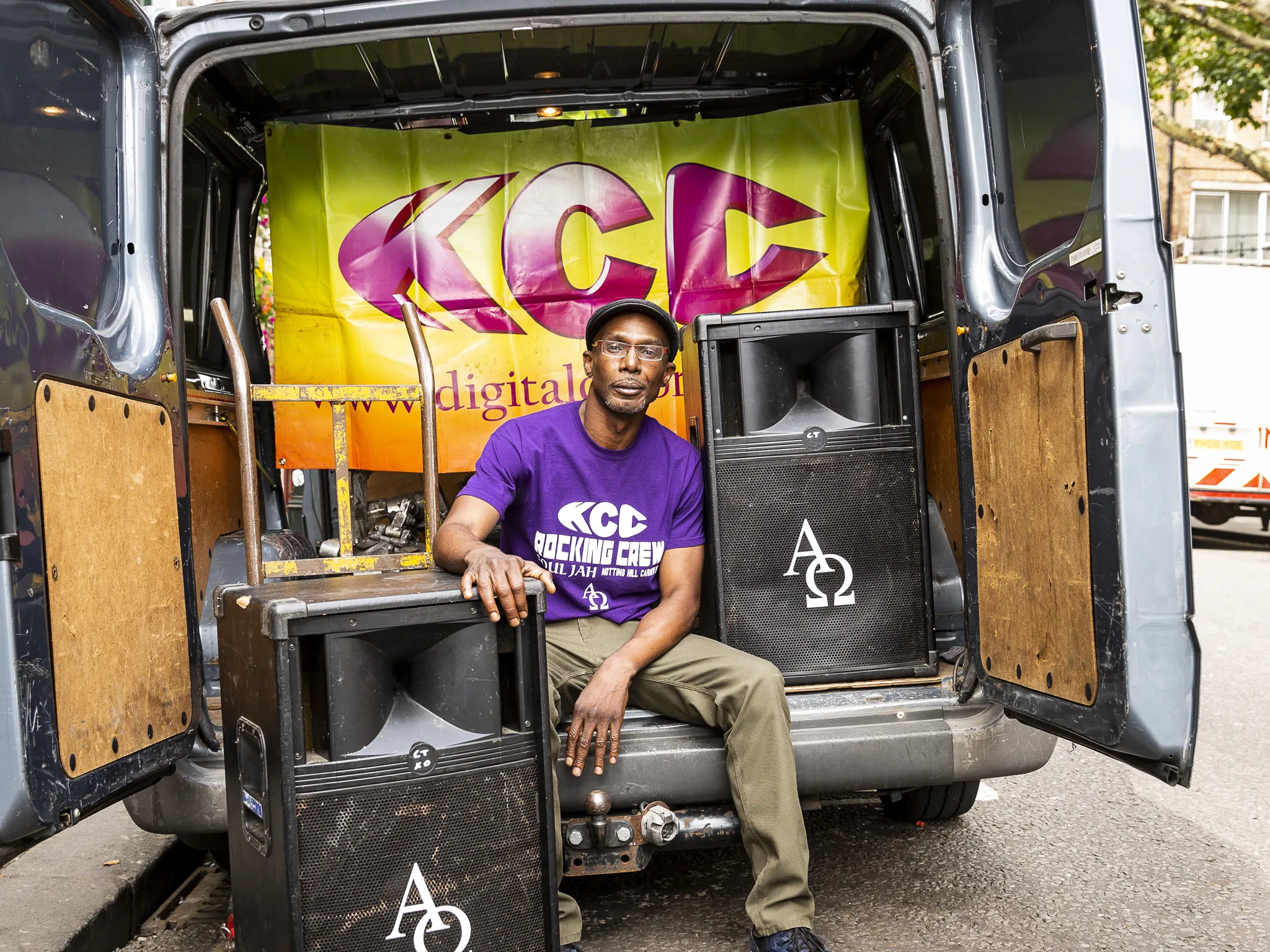 Keith and his soundman Mark are gearing up for this year’s Carnival in Portobello Road’s venerable, reggae-steeped Mau Mau bar. He and his decks are framed by towering speakers and red velvet curtains. Keith is mixing beats that oscillate between West African and ’80s synth. In a few days he’ll be doing the same from the back of a van to hundreds of people (with Mark on hand to fix technical hitches). The soundsystem is a stalwart of the weekend-long party. ‘We’ve even had people meet at our set, get married and name one of their kids “Kacey”,’ says Keith.
