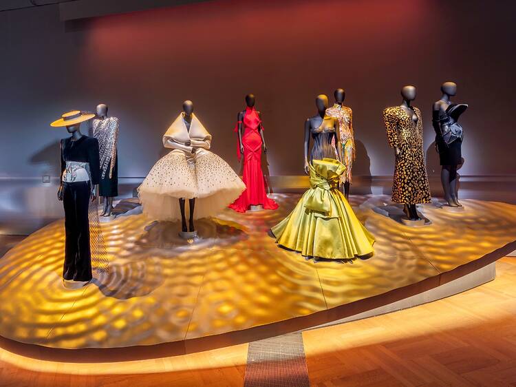 At times, the sections dedicated to the present day house felt a bit advert-y. But frankly, Roseberry’s creations speak for themselves. I let out an audible ‘wow’ when I entered the first room dedicated to his designs, which included a dinner jacket sprouting gold palm trees from its shoulders, and an undulating corseted bubble dress inspired by the layers of a mille-feuille. This is all displayed under a dramatic roving spotlight, soundtracked with celestial music.