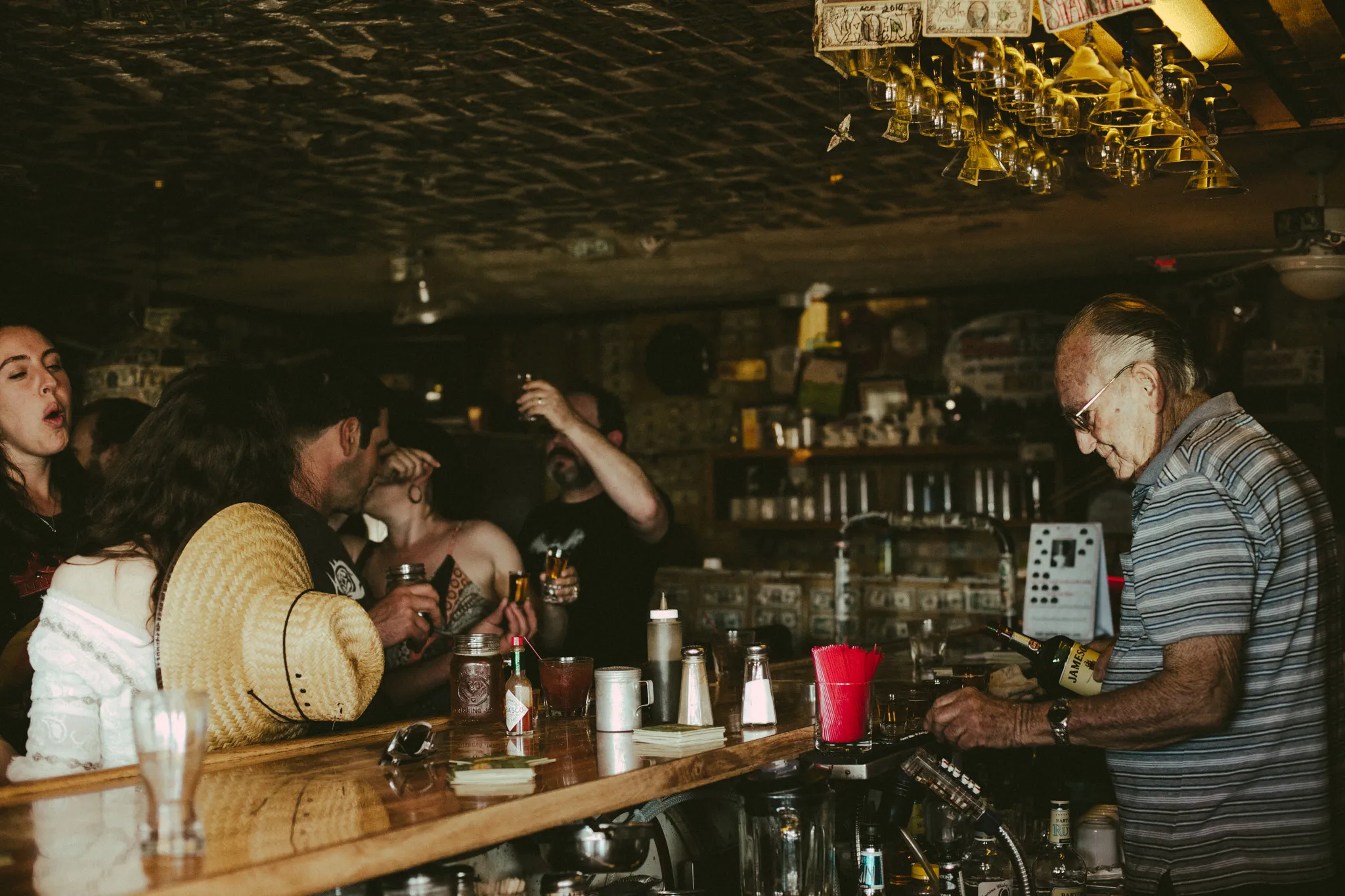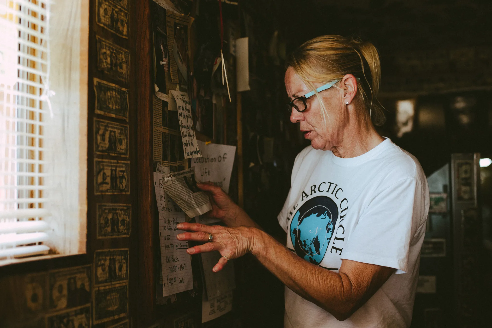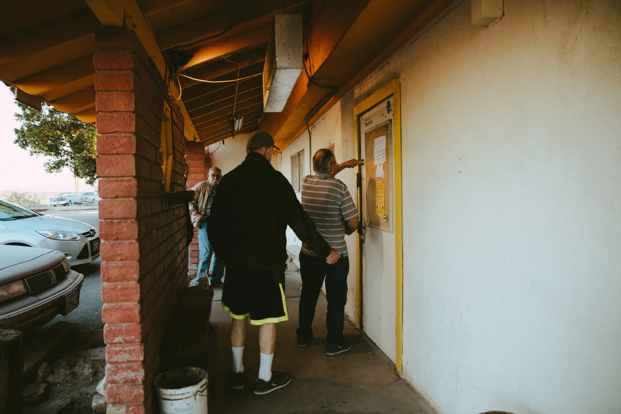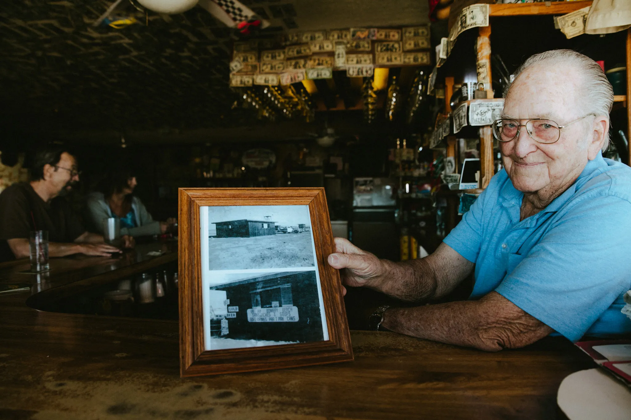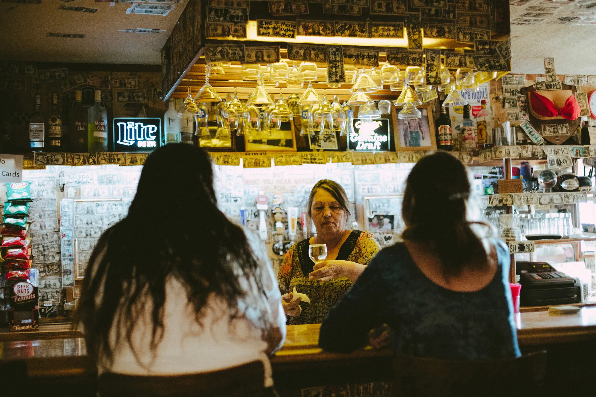 Wendall opens the bar every morning at 6:50 with regular patrons already waiting for him in the parking lot.Wendall was a mobile home transporter before he retired to Riverside in the '90s. His friends who owned the Ski Inn at the time ran into some financial troubles and needed help. He decided to step up and take over the bar with his wife.The bar's walls, ceiling and furniture are covered in dollar and foreign bills.About 10 years ago, someone asked to put a dollar bill on the wall and the owners said yes. Now, they have colored pens and tape ready for whomever wants to partake in the tradition.The regulars who live in Bombay Beach usually come in twice or so a day for a couple of drinks. They talk to Wendall about everything—new purchases, annoying neighbors, fishing memories—and he always listens.There are also the travelers who wander in. They either find out about the bar through the many documentaries about the Salton Sea or just simply driving by. I met Maria, pictured above sitting in the outdoor patio, who was on a road trip from San Francisco by herself. She was camping at Joshua Tree and had heard about the bar on TV.Sharon, the owners' daughter-in-law, comes in at 4pm to take over bartending duties so Wendall can go home and rest.There's a bulletin board with notices about someone's birthday party, a funeral and several news items about the Salton Sea. The regular fixtures at The Ski Inn often find themselves in deep discussions about the failures of the local government in advocating for a revival of the Salton Sea. They keep track of who's done what and so on.Come dinnertime, the crowd is a little different with kids coming to play pool or just hang out, creating a more family restaurant vibe.I met newlyweds Ponzer and Elisha who brought their friends with them for their honeymoon weekend. They have been coming to the area together for many years and stay at properties owned by their parents since the '50s or '60s. New construction is no longer permitted at the Salton Sea due to its position right on the San Andreas fault line.Drinks at the Ski Inn are significantly cheaper with $2.50 beers and $4 shots.Josh, who is part of the newlywed's wedding party, was at the bar early morning having Bloody Mary's before breakfast. He soon returned to continue the party, which eventually led to a nap on the bench outside.After many rounds of drinks, the newlyweds decide to take the party home.Wendall holds up a framed photo of what the Ski Inn used to look like. They have put the Ski Inn up for sale a few years ago. They are eager to retire and hand the business over to someone willing to keep it going. "You wanna buy it?" he asked me on my last day at the bar. For less than $200,000, you could be the proud owner of a Bombay Beach landmark.