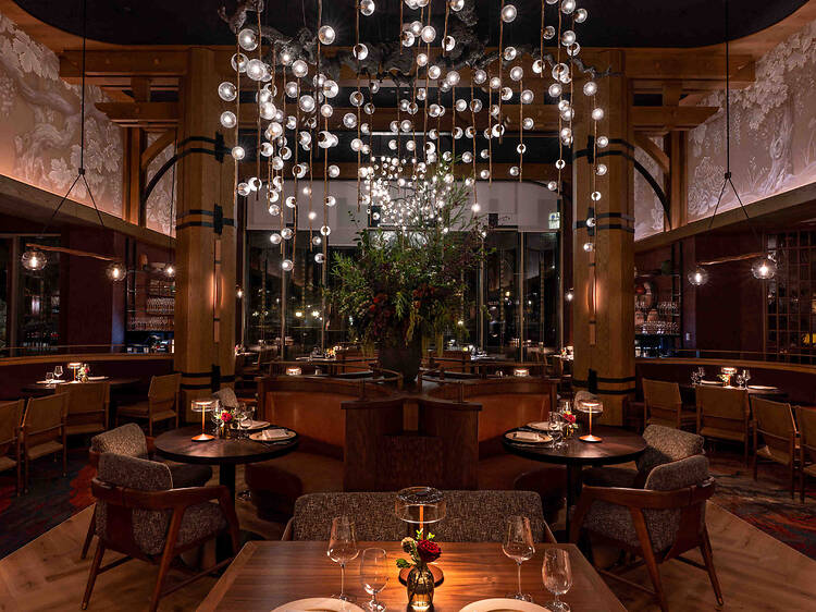 True to form, there are also Disney touches throughout, but only if you purposefully hunt for them (for example, the stained-glass panels over the decanting station are made up of “accidentals” from past Disney projects—try to find the hidden Pluto foot). It’s all done in a very tasteful and subtle way, and while the restaurant embraces its Disney identity—including through its commitment to hospitality—it doesn’t hit you over the head with it.