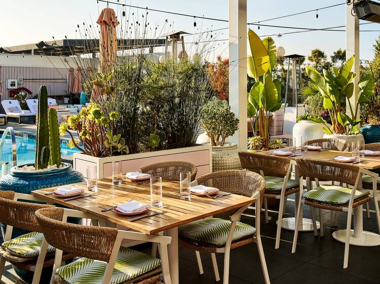 What is it? The third-story pink marble rooftop bar that sits atop Evan Funke’s multi-level 90210 restaurant.