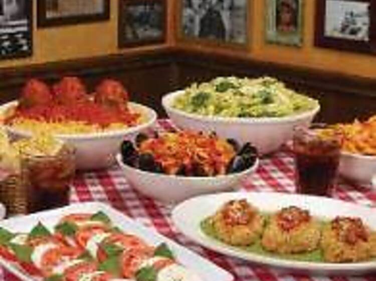Buca di Beppo serves authentic Italian cuisine in an eclectic, vintage setting. Our dishes are served family-style, meant to be shared by everyone at the table. Two sizes are available: BUCA SMALL feeds two or more and BUCA LARGE feeds four or more. At Buca, guests delight in our lively atmosphere, enjoy the classic tunes of Frank Sinatra and Dean Martin and admire our decor, including family photos and candid shots of Italian-American icons, such as Sophia Loren and Joe DiMaggio. Our energetic atmosphere, delicious food and friendly staff make Buca di Beppo the perfect place for great Italian food and fun.