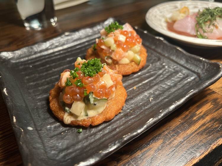 It wasn’t until after I experienced the glaring inconsistencies of Venice’s RVR that I’ve come to truly appreciate the chef-driven approach of Charles Namba’s California-style izakaya in Echo Park. The seasonal inflection to traditional izakaya fare adds enough intrigue to warrant a visit the next time you’re in the general area, especially if you enjoy kushiyaki. The vegetable tempura and skillful spin on silken tofu from Gardena’s Meiji Tofu stand toe to toe with homier spots in the South Bay; the charcoal-grilled onigiri and soy-simmered black cod make for an excellent sit-down meal; and who can deny the delight of a Japanese “latke” topped with dry-aged salmon, pickled cucumbers and ikura? For more of a deep-fried snacky situation, I prefer OTOTO next door, which serves chicken karaage, heartier versions of tempura and a potato salad perfect for soaking up sommelier Courtney Kaplan’s award-winning sake program. Order the cornflake-dusted hojicha parfait for dessert—or at least the slightly cheaper standalone soft-serve.