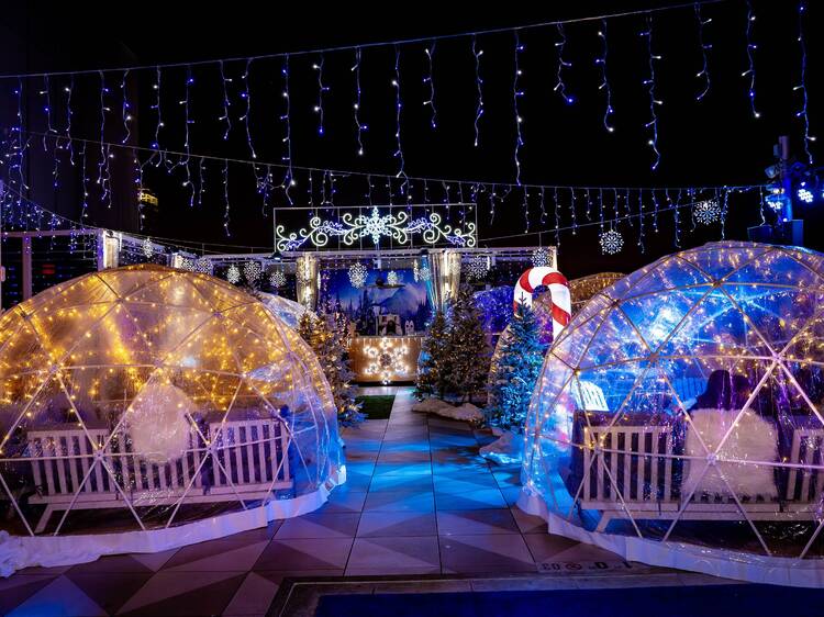 Most of the year, Level 8’s rooftop bar, Golden Hour, is a poolside spot that channels the Copacabana. But over the holidays, it transforms into Winter Hour, a pop-up immersive winter wonderland outfitted in icicle lights, festive decor, faux snow and s’mores stations—and still boasting stunning views of DTLA. Don your après-ski or “Santa Baby” best and head to the top of the Moxy hotel. Your ticket includes a welcome drink—choose from a seasonal cocktail or a ski shot. For a more exclusive experience, spring for a cozy fire pit or intimate igloo.