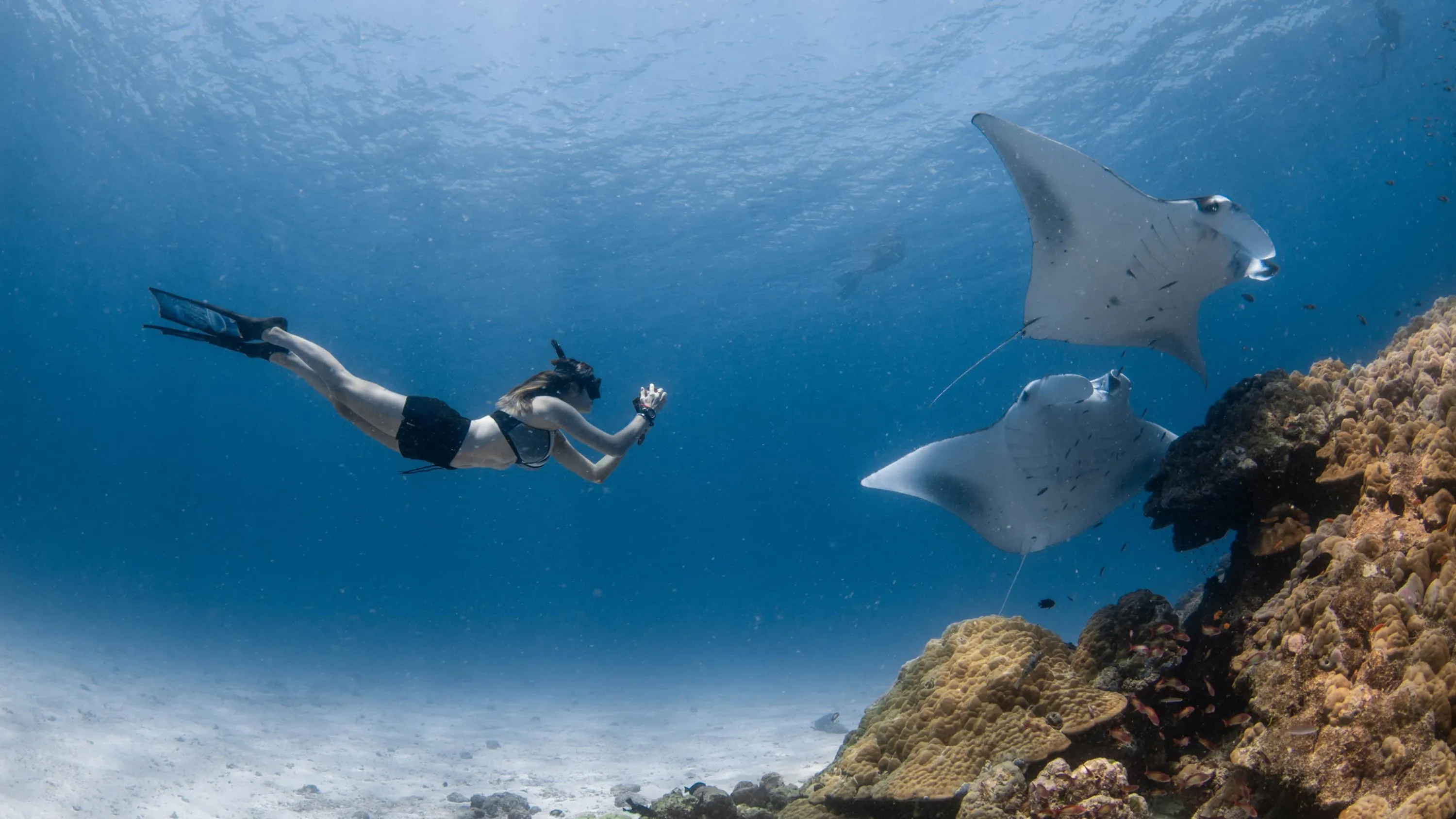 During my stay, I was lucky enough to snorkel with several mantas at Hanifaru Bay, guided by marine biologists who ensured every encounter was respectful and unforgettable.