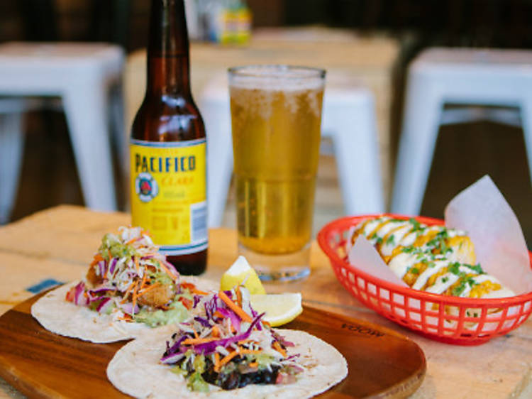 Speaking of Mexico’s greatest export, there are more than 100 varieties of tequila and mescal on offer, along with your favourite Mexican beers: Sol, Pacifico Clara and easy-drinking Coronas. There’s also a good range of the luminous Jarritos sodas, so you can get them to throw you together a decent Paloma with the grapefruit number and a measure of unaged blanco tequila.