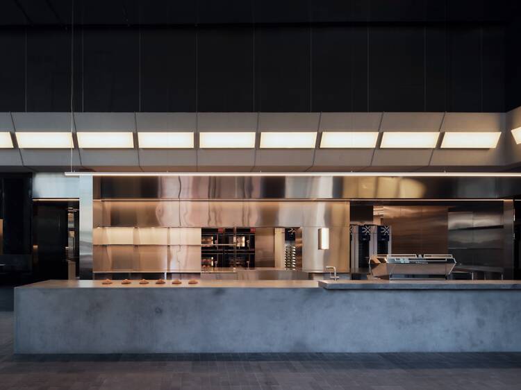 Designed by Melbourne-based architecture firm In Addition, the new space is distinctly Melbourne in its structural essence. With paired-back concrete minimalist features, black mirrored glass and a bluestone tile floor that's inspired by the NGV, this new iteration of Lune is gallery-esque, and has been created to focus on the resident works of art – the handcrafted croissants. With a huge concrete table, a glass cube that you can peer through to see the pastries being made and super high ceilings, this is a more theatrical than utilitarian eating experience.