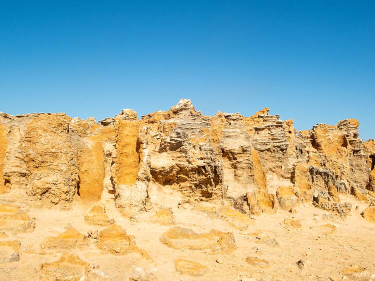 Hiding in plain sight on Victoria’s rugged south-west coast, the Petrified Forest looks like it’s been plucked straight out of the movie Dune. Rising from the sandy ground are dozens of eerie, trunk-like stone columns that resemble the remains of an ancient forest turned to rock. But despite the name, the formations aren’t actually fossilised trees at all – they’re a geological illusion created over millions of years by wind, water and limestone.