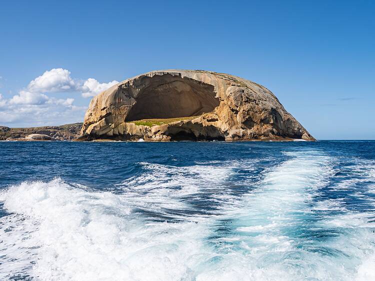 From Melbourne, drive about three hours southeast to the park entrance near Yanakie. From there, head to Tidal River – the park’s main hub – where many boat tours depart to explore the coastline and surrounding islands. Once you’re on the water, the dramatic silhouette of Skull Rock is impossible to miss.