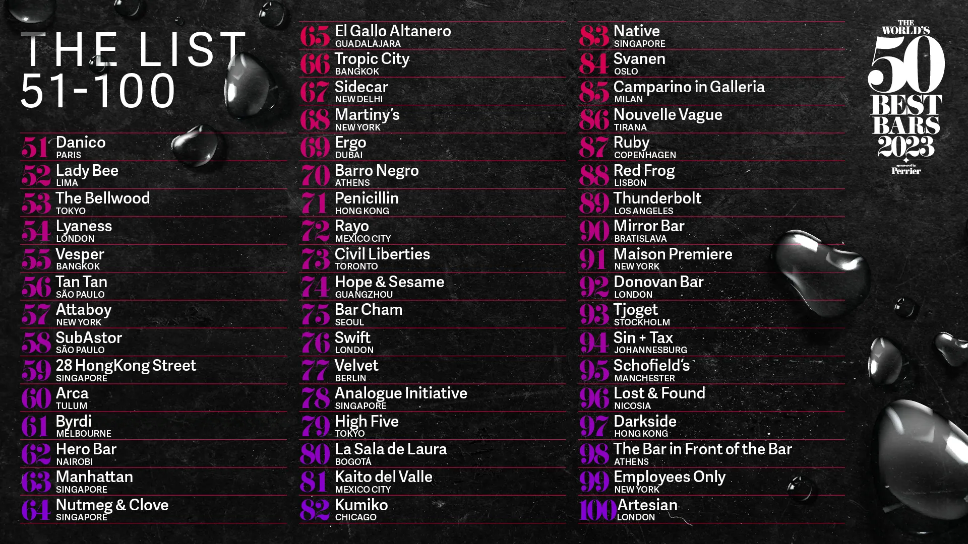 Whether any other Melbourne bars make it to the top 50 or not is still yet to be known, so make sure you tune in on October 17 to see the final list. In the meantime, check out the full 51 to 100 list below, along with some FAQs: