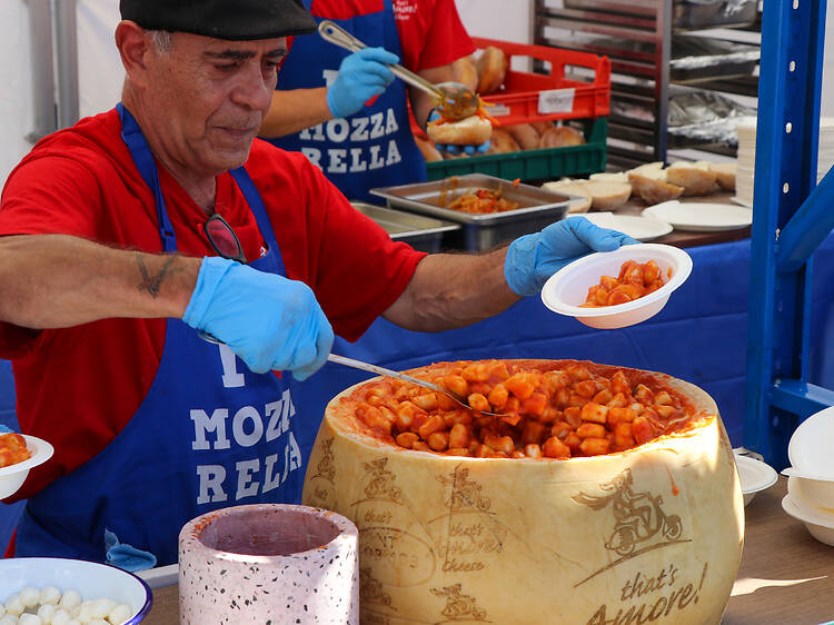 That’s Amore Cheese will be dishing up hot ricotta, spaghetti cacio e pepe tossed in a Grana cheese wheel. You’ll also find Abruzzese arrosticini from Abruzzo Lab, pizza and calamari from Saluti Pizzeria, melted caciocavallo over charcoal from Pacelli Deli, seafood panini from Pescato Ocean Eats and arancini and lasagne bites from The Arancini Mann.