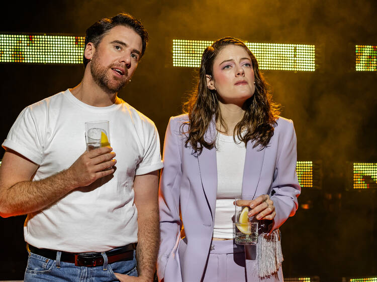 And McCracken has a perfect partner in crime in actor Simon Leary; who stands in for her ex-partner, gay best friend and even Elvis himself. He’s dragging the lovelorn McCracken to live gigs and Berlin darkrooms. Or he’s playing the ‘avoidant’ partner too well during a tense fight over tacos. The pair have a magnetic chemistry, and their subtle approach to comedic and dramatic moments helps the show’s tragedy land with a devastating naturalism.