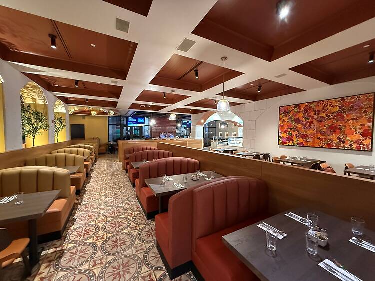 The new Bagel Emporium & Grille occupies a giant ground-floor space inside the Mediterranean-style office complex at Ponce de Leon Boulevard and Bird Road. While the bones of the place remain comfortingly familiar—the menu is still full of bagels, schmears and mile-high deli sandwiches—the move is a real expansion. For the first time in its 50-year history, Bagel Emporium is serving lunch and dinner daily, along with a full spirits menu to accompany its classic coffee-and-orange-juice setup.