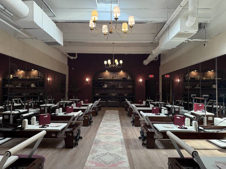 727 offers Pilates reformer and mat classes, which incorporate the Wunda chair and infrared heating, respectively. Both focus on sculpting, though it was the mat sculpting class that really put my muscles to work—with the help of those chic, cream-colored Bala bangles and bars, no less.