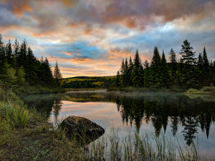 On the way north, several new First Nations cultural initiatives provide additional reasons to explore Montréal, including an outdoor sculpture trail along Peel Street, created in collaboration between an Indigenous and a non-Indigenous artist; a new Inuit art gallery at the Montréal Museum of Fine Arts; and, 20 minutes south, the upcoming Kahnawà:ke Cultural Arts Center, set to open in 2026 within the Kanien’kehá:ka (Mohawk) community.