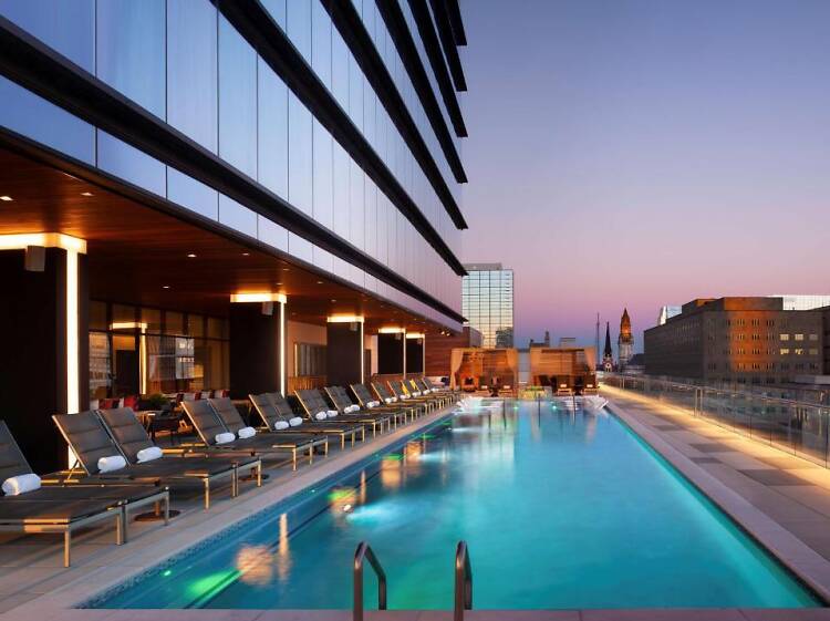 Even the smallest of the Grand Hyatt’s 591 rooms feel generous by city standards, starting at 360 square feet. Those wanting more elbow room can opt for one of the hotel’s many suites, from 600 square feet to the 1,550-square-foot June Presidential Suite. Rooms come with all the luxuries you’d expect from a high-end property: plush robes, flat-screen TVs, blackout curtains, Nespresso machines and premium Balmain bath products.