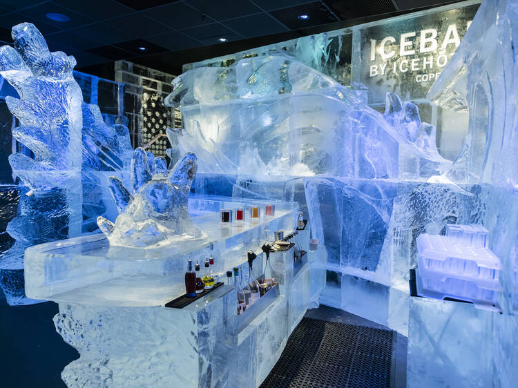 It’s difficult, for me, to think of ice without a vague association of rising sea levels and starving polar bears. How will the new-look ice bar handle the issue? Perhaps with a storytelling about the majesty of ice and our need to protect it? Maybe this ice temple will make us want to see more of it in person, or to really appreciate it, having touched it? Let’s take a tour and find out.