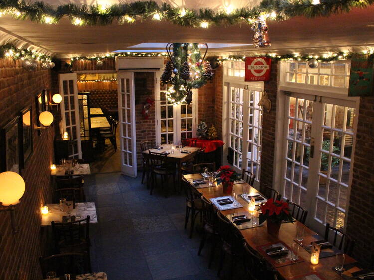 The more refined side of British booze culture is reflected at this UES gastropub. Retire to the main dining room—featuring a wraparound button-tufted banquette, caged Edison lightbulbs and dozens of volumes of Shakespeare—for a full menu of soups, savory pies (steak and kidney, rosemary lamb) and mains, including Lancashire hot pot and bangers and mash. Come spring, the dressed-up tavern will offer afternoon tea service—complete with scones, seasonal jam and clotted cream—in the building's garden atrium.