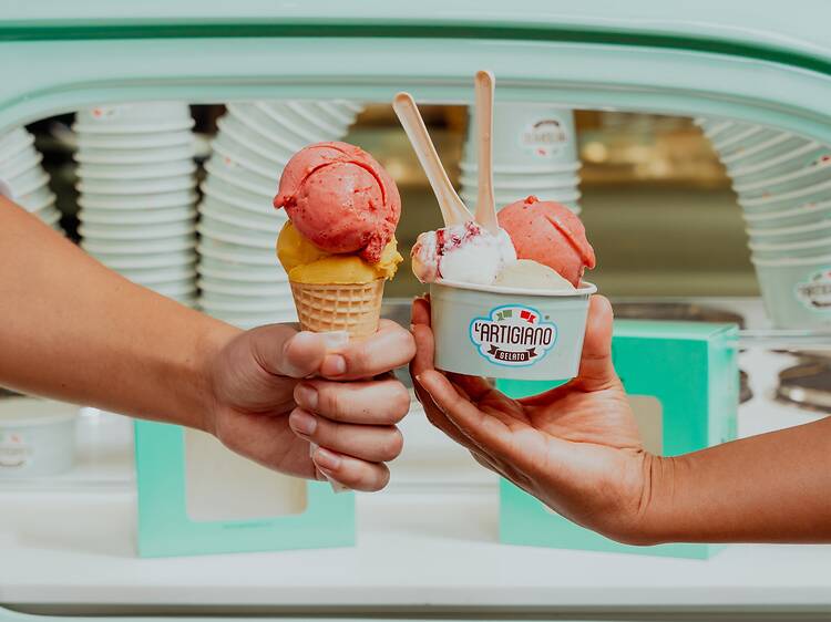 Now, the gelateria on wheels has set coordinates for a new destination, parking itself in Dumbo. Starting today, Friday, April 24, L'Artigiano Gelato brings its artisanal gelato to Time Out Market New York, Brooklyn. Popular and seasonal flavors will be on board, including the affogato al caffè, stracciatella and tiramisù. Sorbets will also be served, including mango sorbet and Sicilian lemon sorbet. And yes, the Fiat will be coming along as well, parked right next to the stall.