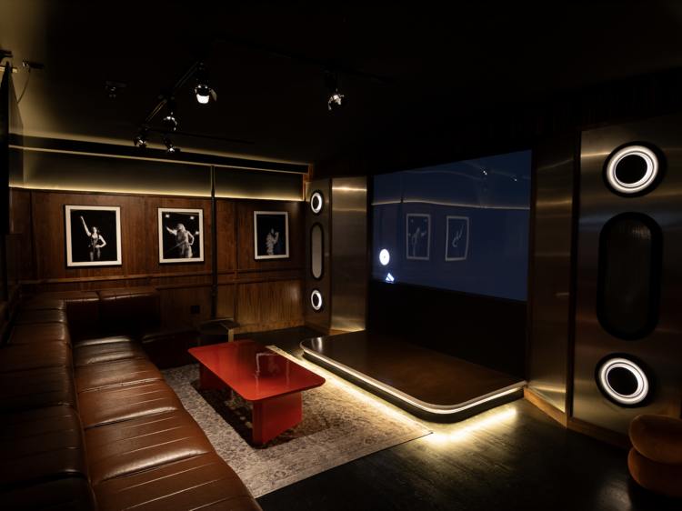 The space itself, designed by Zachary Pulman Design Studio, feels worlds away from a typical karaoke lounge. A glowing space decked out with vinyl records and concert photography sets the tone before guests enter one of three private suites. Each room transforms into an immersive stage with LED backdrops, plush seating and theatrical lighting. Onstage, every performance unfolds across three screens, including a massive 8-by-5-foot LED wall that makes every number look like a music video. So dress accordingly.