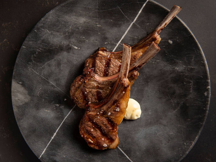 Not that it’s all meat sweats—Txula also pulls from the sea, with txipirones (baby squid), Spanish red shrimp and bluefin tuna making the leap from Iberian waters to the Hudson. Classic pintxos like croquetas and jamón Ibérico keep things snackable, while a cheesecake cart rolls through with Basque cheesecake plus toppings like truffles, honey and olive oil.