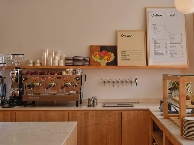The menu sticks closely to what made the original a hit. Canyon’s organic coffee is served alongside simple toasts and teas from Masha Tea and Kettl. There are a few local twists, though: fresh apple cider replaces Echo Park’s orange juice and pastries come from a lineup of Brooklyn favorites, including Elbow Bread, Amanda’s Good Morning Cafe at Strange Delight and She Wolf Bakery, with gluten-free options from Knead Love Bakery. The toast program is overseen by Chef James Wayman.