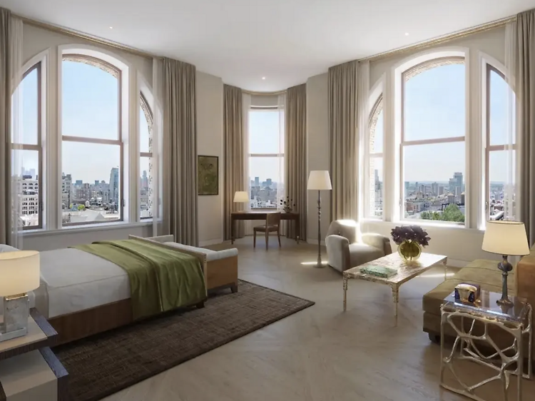 Apartments span from three-bedroom residences priced at roughly $10.95 million to a sprawling five-bedroom home on the 21st floor for a cool $50 million. The largest unit currently on the market measures approximately 7,400 square feet and is anchored by a vast great room stretching nearly 77 feet in length. The penthouse features four bedrooms, four and a half baths and close to 4,600 square feet of interior space, complemented by a dramatic wraparound terrace of more than 3,200 square feet.