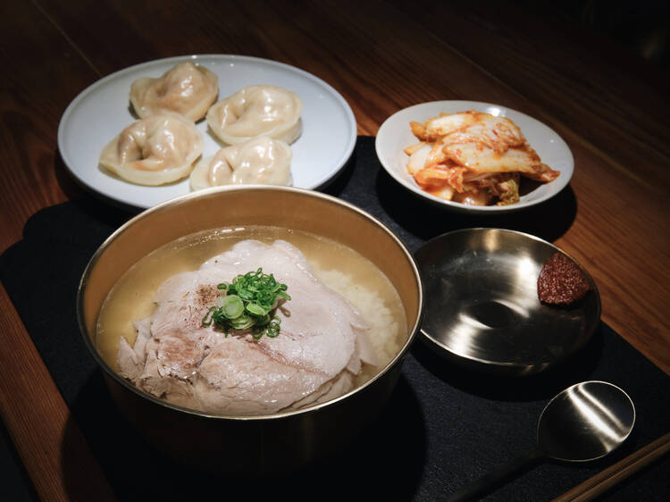 The menu will, of course, be identical to the one served at the various locations in Seoul. In addition to the $18 dwaeji-gomtang, diners will get to order kimchi mandoo for $12, a side dish of Korean dumplings filled with hose-made kimchi, braised pork and glass noodles. Also expect Korean soju and a small selection of beers on offer.