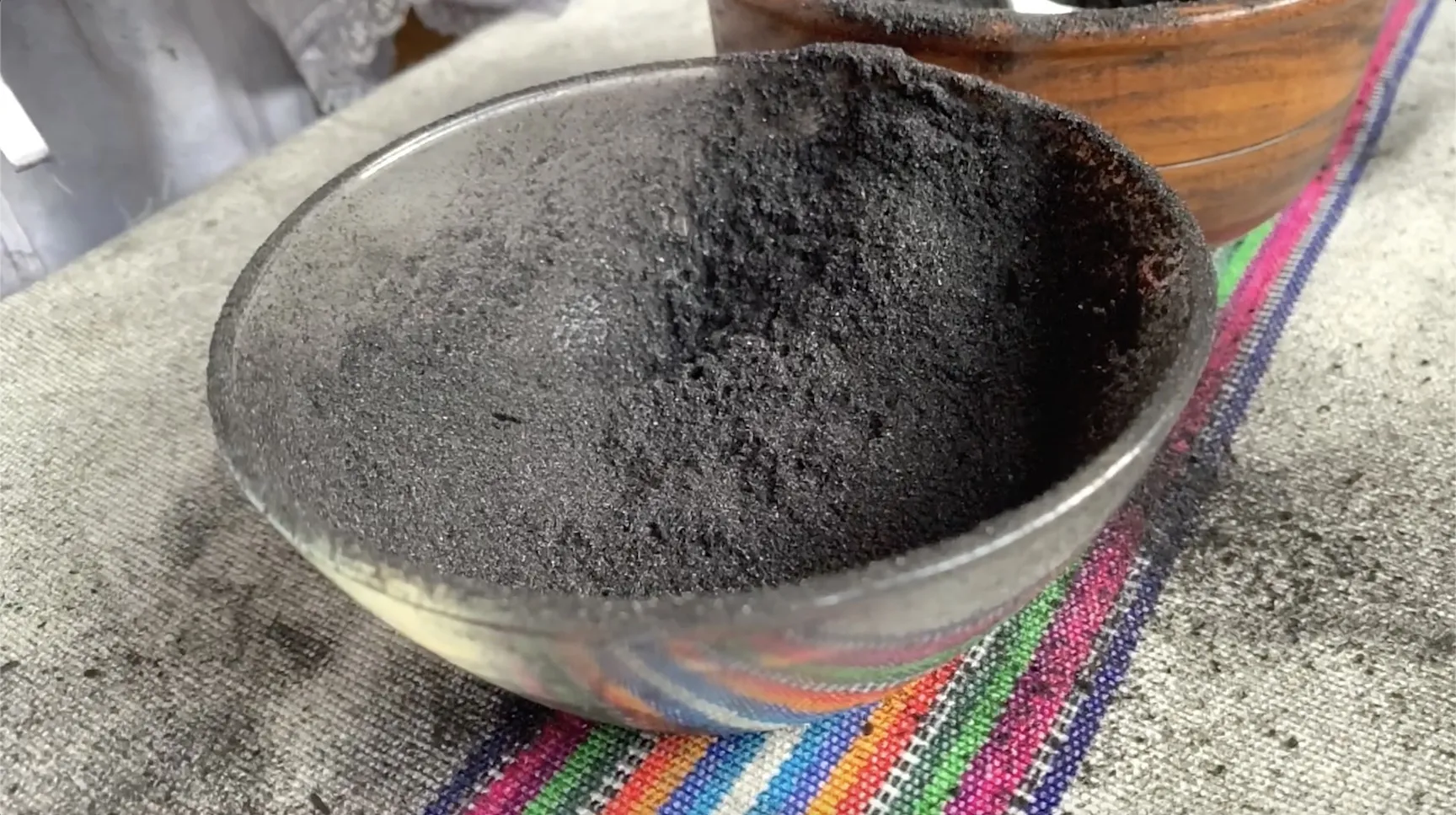I grind them. There are cultures that make wines, or mix the ashes with water; other folks cook or just eat pieces of the heart or the flesh. But I'm taking just the bone pieces. I'm grinding them down in a molcajete, or a mortar and pestle, and then I'm adding them into the food. I'm grinding them down in a metaphorical sense to help grind down the body and flesh, but also it's almost to subvert the grinding that we do in real life, and all the beating that we've taken throughout, but now it's done out of love. Now it's done to pass on, to process, figuratively and literally. But also I'm grinding it down because if we don't grind it down even further it'll be really gritty, and it's not going to mix well with the rest of the food.