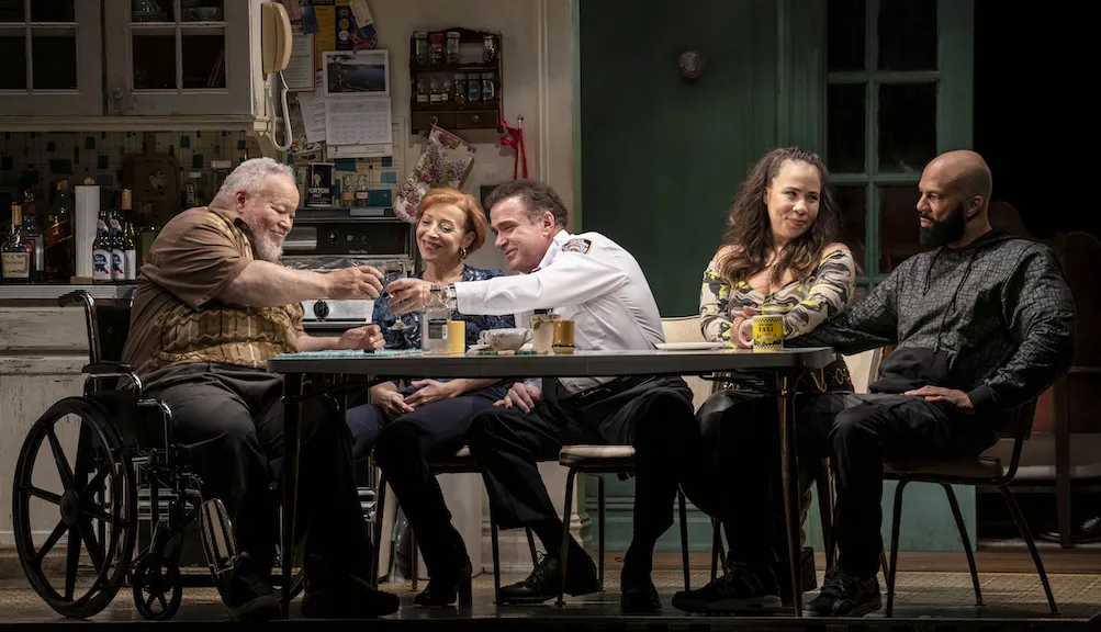 “This ain’t about no black white or blue,” says Walter. “This is about the green.” But money is just one of the factors that play into his sense of paralysis, and Guirgis paints in a wide range of colors. In veteran director Austin Pendleton’s well-balanced production, they are brought to life by an ensemble of actors whose comfort with one another is tangible: Aside from the rapper-turned-actor Common, who makes a solid Broadway debut, the cast has been with this play since its Off Broadway debut at the Atlantic Theater in 2014 and subsequent extension at Second Stage (which is also behind this delayed transfer). The earthy Rispoli and the divine Colón-Zayas, in particular, are unimprovable in their tricky roles. But it is Henderson who, as Between Riverside and Crazy’s gravitational center, holds it all together. He’s a perfect combination of rent and controlled, and his deceptively natural star turn is the twisted, generous soul of the play.
