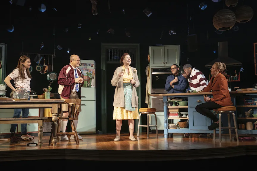 In Noah Haidle’s thin and drippy Birthday Candles, the earnest Ernestine (Debra Messing) prepares and bakes a cake in 90 minutes of real time, as 90 years of her life pass by. A smell of baking thus wafts through the theater, providing one of the production’s few whiffs of reality. Haidle means to suggest that the specific is universal—Christine Jones’s set is a kitchen that floats in the vastness of the cosmos, with household objects hanging over it like stars—but he forgets to be specific. It’s Thornton Wilder without the wildness or the thorns.