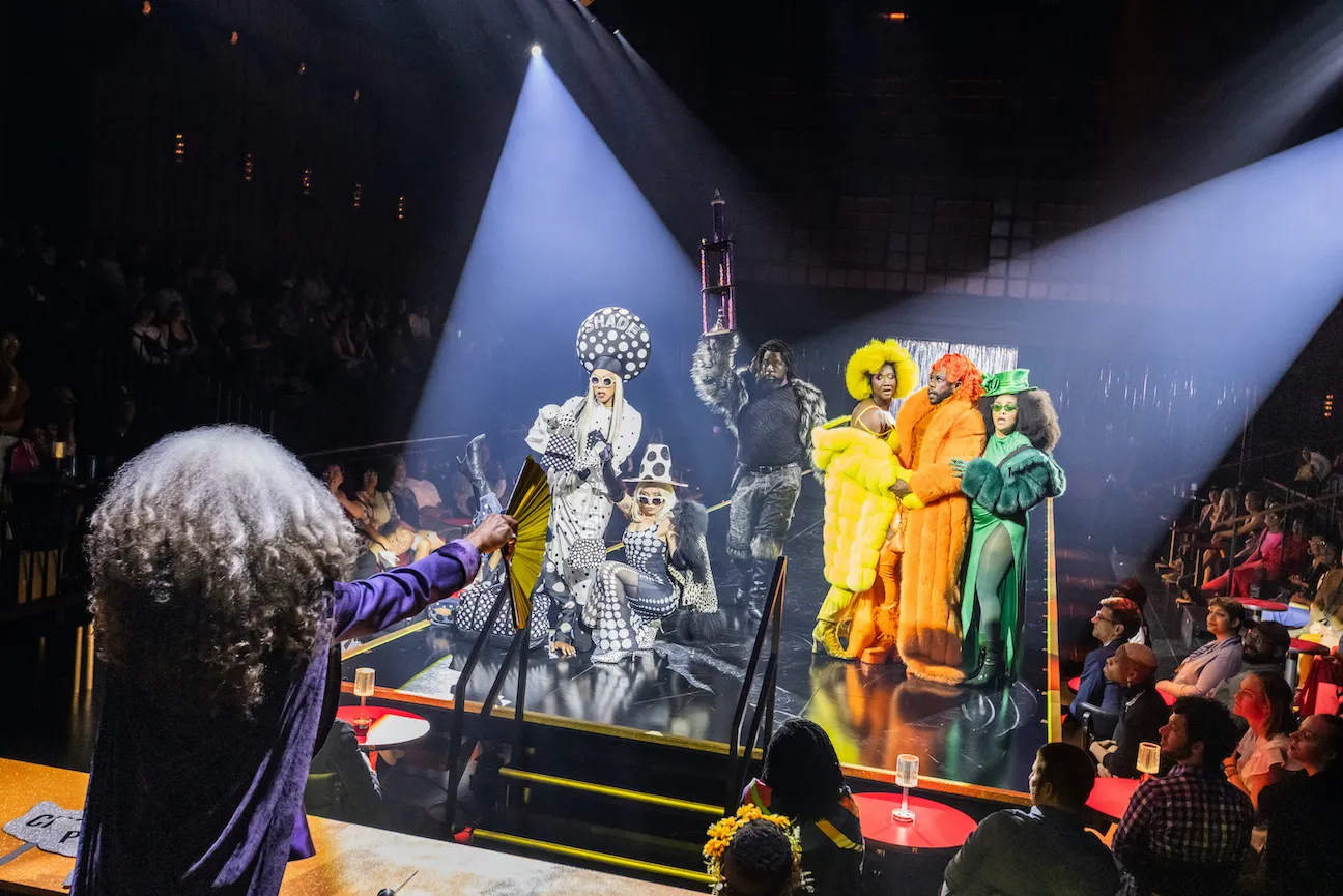 Cats: The Jellicle Ball delivers everything you want from Cats in a completely fresh way. The small orchestra, conducted by music director William Waldrop, sounds a good deal fuller than one might expect. Occasionally ornamented with modern beats, Lloyd Webber’s melodies come through clearly and alarmingly contagiously; the show’s opening number, “Jellicle Songs for Jellicle Cats,” will stick in your head whether you want it to or not. (Hint: You won’t!) Arturo Lyons and Omari Wiles’s vogue-heavy choreography is a consistent delight, and the excellent ensemble cast—whose performers fall on wide spectrums of gender identity and presentation—radiates joy. Rachel Hauck’s mostly peninsular set, lit by Adam Honoré, includes amusing immersive elements for those seated on the cabaret tables and banquettes near the central runway. Qween Jean’s costumes and Nikiya Mathis’s wigs are as extravagantly creative as the concept demands; Kai Harada’s sound is the cat’s meow.