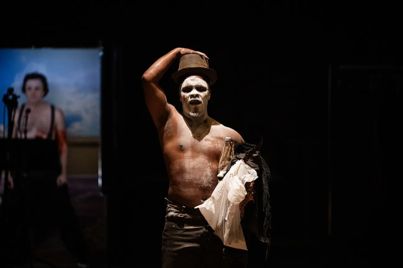 Thanks in part to old Hollywood westerns, the Wild West looms large in American self-mythology. It's exhilarating and disturbing to see its tall tales viciously dismantled from an outsider's perspective in Dark Noon, a fast and furious transhistorical one-act—written by Denmark’s Tue Biering, who also co-directed it with the Johannesburg-based multidisciplinary artist Nhlanhla Mahlangu—that St. Ann's Warehouse has imported from the Edinburgh Festival Fringe. Seven South African performers, playing European settlers, literally construct a pioneer town onstage, in the form of Johan Kølkjær's ingenious, easier-to-assemble-than-IKEA set. Their plans to push west, of course, rely on slaughtering Indigenous people to clear the land, enslaving Africans to work the fields and importing Chinese immigrants to build the railroads.
