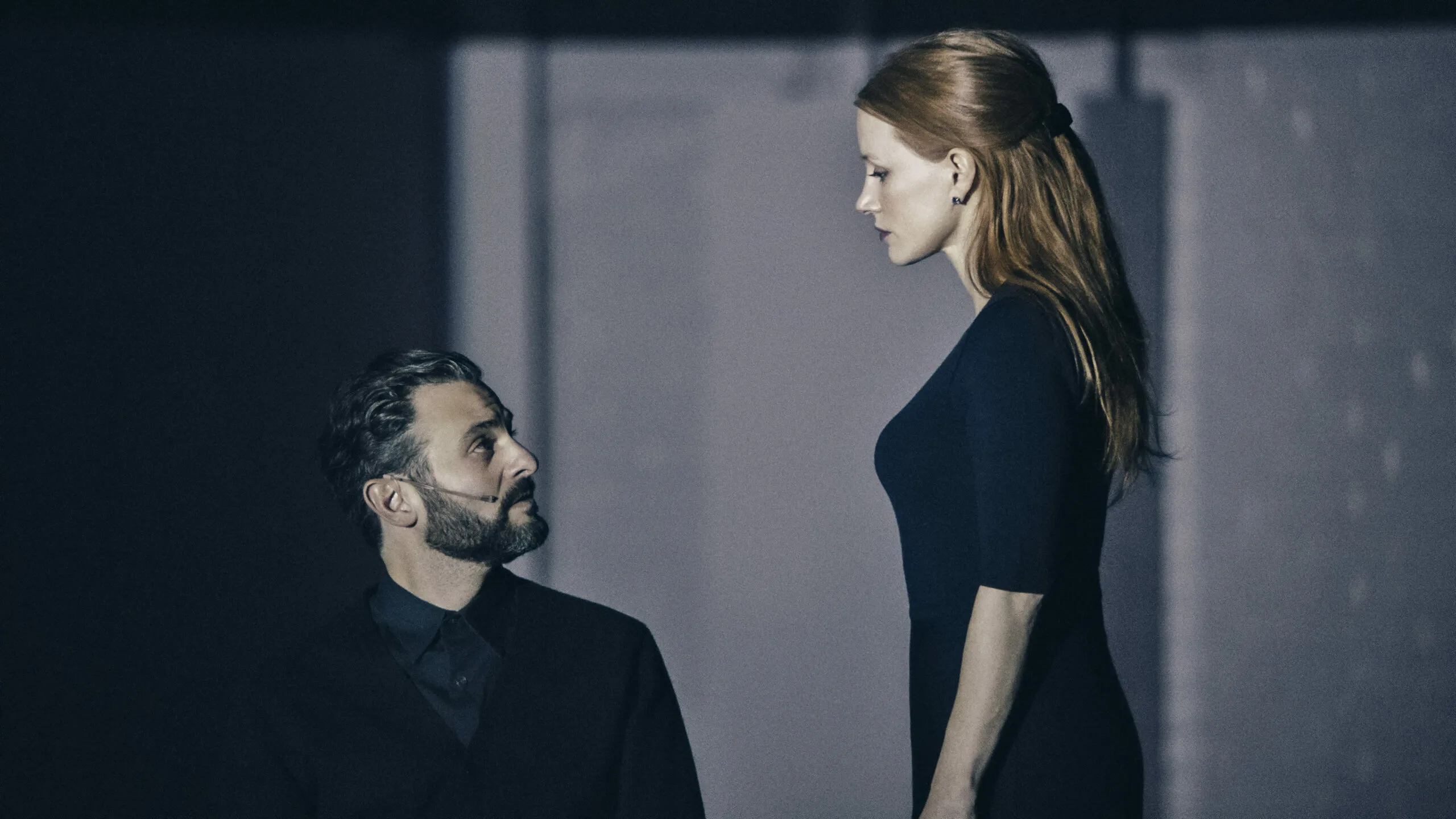 When this strategy doesn’t work, it can leave you unsatisfied, without even the material comforts of an old-fashioned production to enjoy. But in the new Broadway revival of A Doll’s House, it slices clean through you. The superb Jessica Chastain plays Nora Helmer—the seemingly happy young wife and mother of Henrik Ibsen’s protofeminist 1879 social drama, who must learn to stop knitting the wool that gets pulled over her eyes—and Jamie Lloyd’s staging zeroes in on her with relentless focus. Chastain is seated onstage before the play begins, and she spends most of the next two hours, without intermission, facing forward in a plain wooden chair. The stage is completely bare, with no set unless you count a ceiling of lights that descends as Nora’s world closes in on her. The actors wear simple, modern blue-black clothes; aside from some changes of position, sometimes accomplished via turntable, there is almost no blocking.