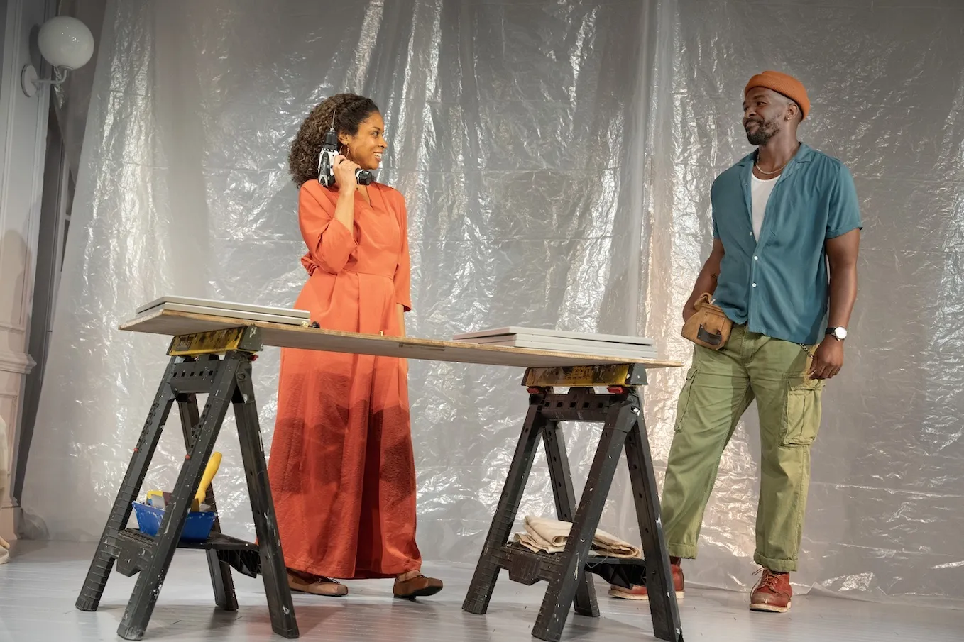 Memories of the past and fears of a precarious future haunt an urban community in James Ijames's Good Bones. Set in an area undergoing a seismic transformation, the drama unfolds in a townhouse kitchen that a proud local contractor, Earl (a disarming Khris Davis), is renovating for a moneyed married couple: Travis (Mamoudou Athie), a restaurateur, and Aisha (Susan Kelechi Watson), who was raised nearby and now represents a controversial stadium project that promises to revitalize the neighborhood. Fan Zhang's superb sound design gives a sense of the vibrant lives beyond Aisha and Travis's door, which keeps opening on its own—one of a series of small, supernatural reminders that history is embedded in their walls.