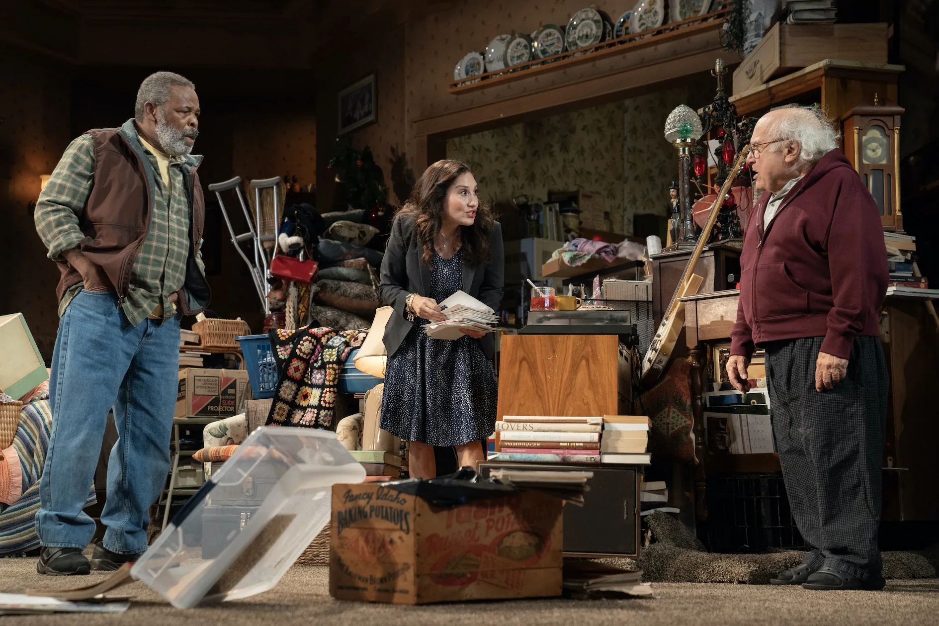 The most interesting moments of this good-natured but threadbare comedy, which Rebeck wrote during the pandemic lockdown, touch on the relationship between physical objects and memory. To Sam, each knickknack is a time machine to a meaningful moment; his inability to let go of the past is a major factor in whether or not, in the end, he can bring himself to take out the garbage. DeVito is a star for a reason: His vulnerable, hilarious performance is a certifiable gem. If only this treasure weren’t so often lost in the piles that surround it.