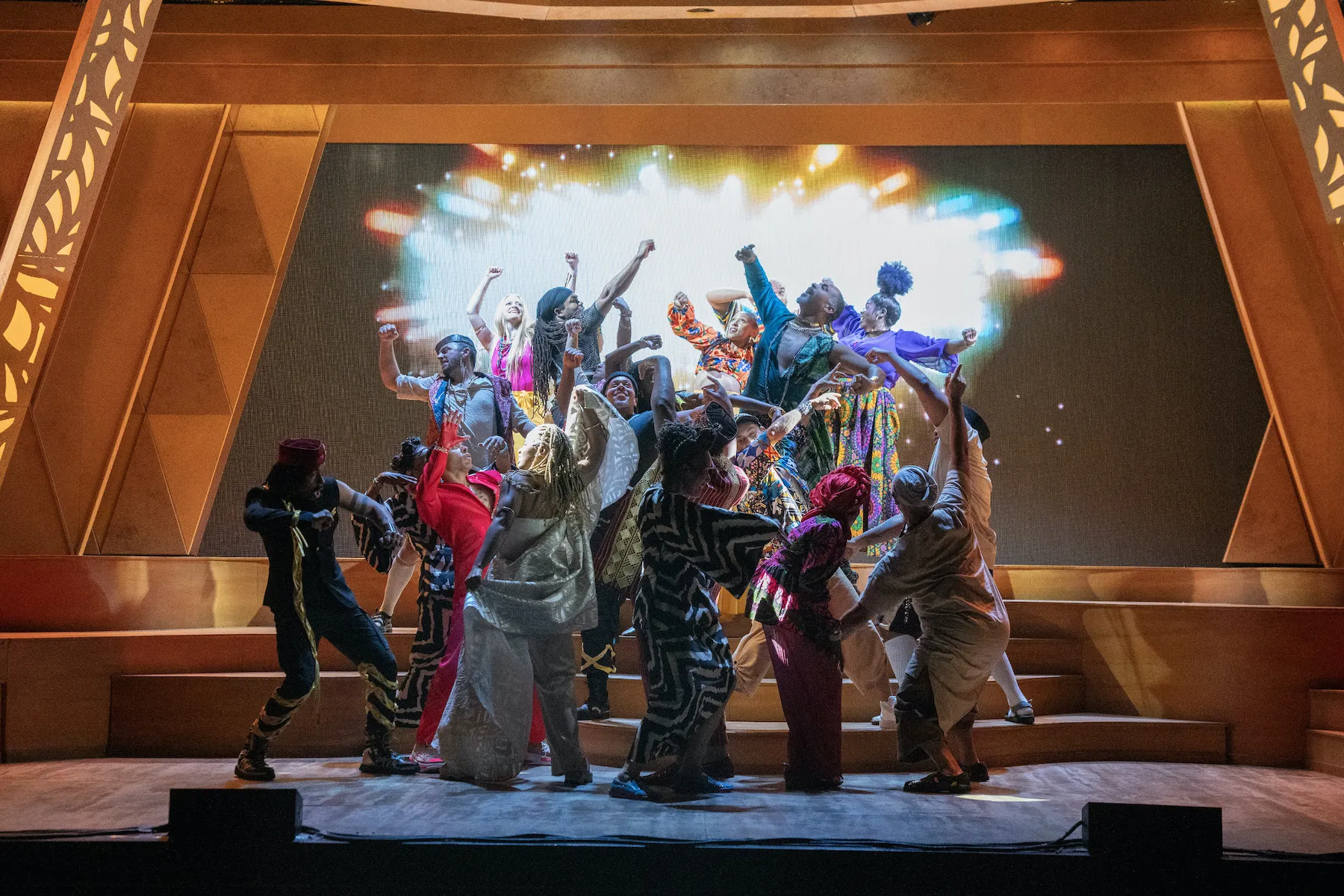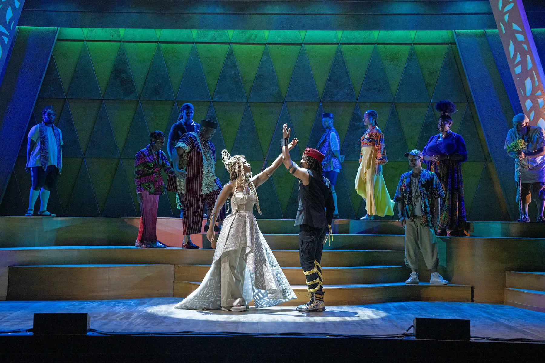 Directed by Ian Belknap and Ty Jones, this premiere of Malvolio is consistently appealing as well as eye-popping, thanks to Celeste Jennings's colorful, Caribbean-infused costumes, Alan C. Edwards's vibrant lighting, Dell Howlett's exhilarating choreography and Earon Nealey's fabulous hairdos. Like its protagonist, the production is still finding itself. Several parts and players are uproarious—along with Gilmore, the standouts include Morrison's hilariously narcissistic king, who wears a robe emblazoned with his portrait, and Paula Galloway's no-nonsense Maria—while some other shtick does not yet land. But Shamieh is not just out for laughs. Toward the end, as the characters confront each other and long-held secrets and longings are revealed, you may even find yourself a little verklempt. Would that we all could have a second act as fulfilling as Malvolio’s.