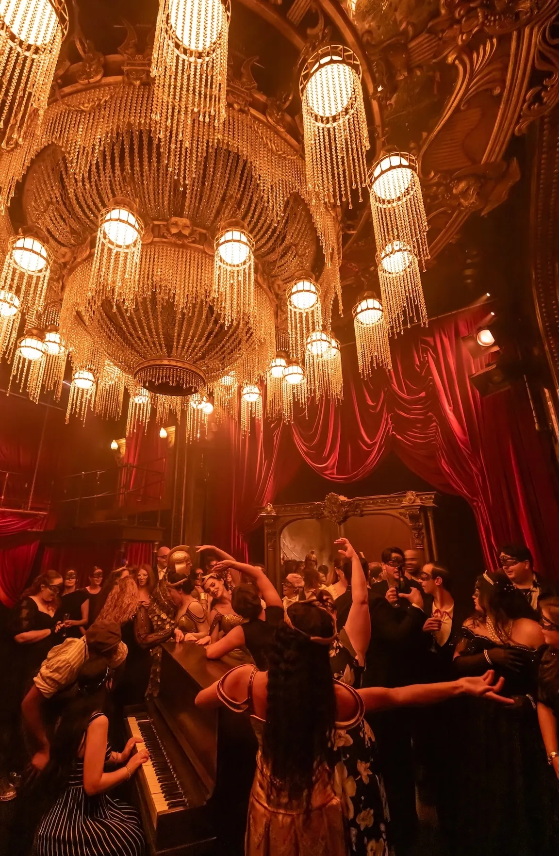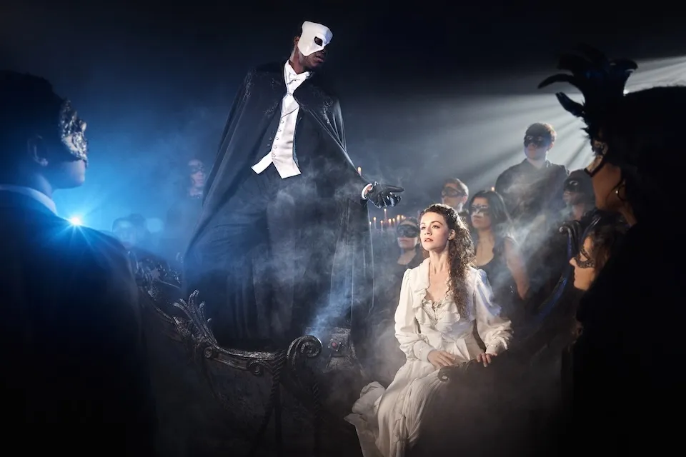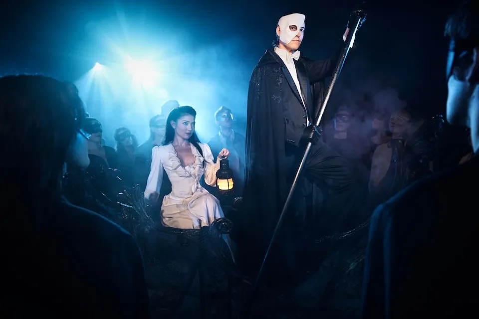 Ever since the Andrew Lloyd Webber musical The Phantom of the Opera hung up its mask in 2023, after a record 35-year run on Broadway, the show’s ardent admirers (there are packs of them) have been wishing it were somehow here again. And now it is—with an emphasis on somehow. The revisal of Phantom now playing Off Broadway as Masquerade has been significantly revised to fit a very different form: an immersive experience, à la Sleep No More, in which audiences are led en masque through multiple locations in a midtown complex designed to evoke the 19th-century Paris Opera House where soprano Christine Daaé is tutored and stalked by the facially misshapen serial killer who lives in the basement. The very notion of this reimagining—created by Lloyd Webber and director Diane Paulus, from a concept by Randy Weiner—is surprising; perhaps even more surprising is that, somehow, they pull it off.