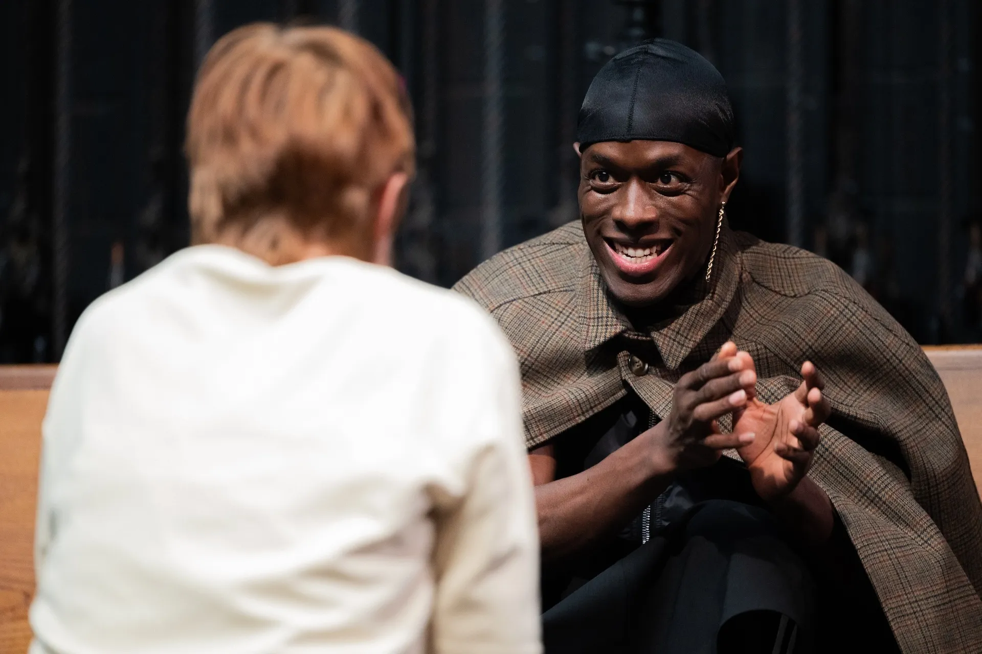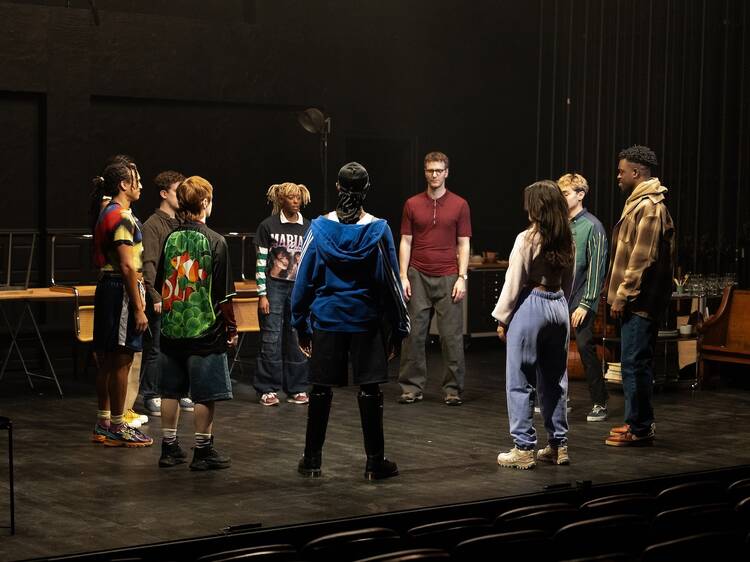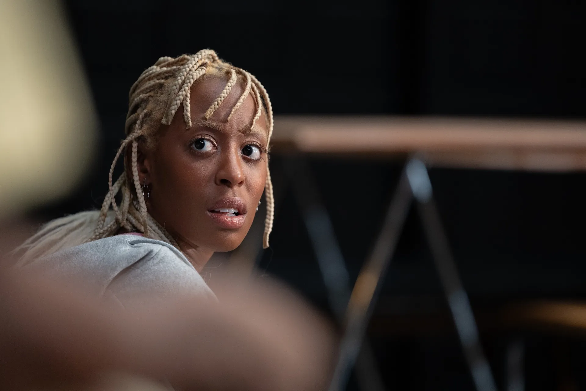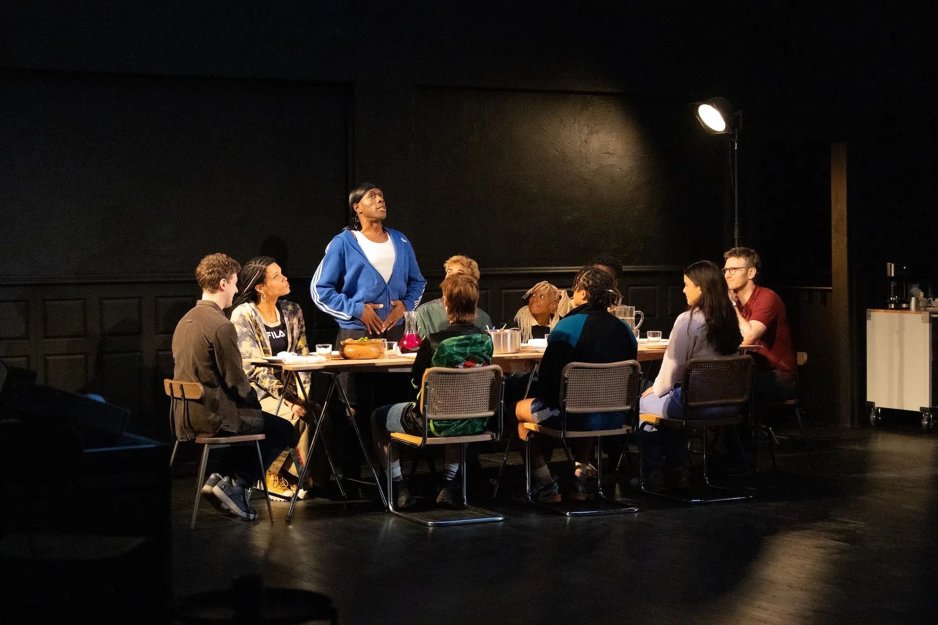In the play’s opening scene, a study in human pliancy, seven young performers stand on a bare stage, auditioning with the same monologue. With each take, they absorb direction unquestioningly: bending without breaking, desperate to prove themselves to a gaze they cannot see. The disembodied voice dispensing notes from the aptly named “God mic” belongs to Asa Leon (Ronald Peet), a critically acclaimed auteur whose MacArthur “genius” grant—“Not that I would label myself as a genius,” he protests coquettishly—has enabled him to convert an old church in Brooklyn into an ascetic sanctuary for rehearsal. A consummate aura farmer, Asa gathers the actors to participate in a devised work that draws on their own histories and psychic vulnerabilities to generate material that will be staged in Berlin and London. (The mere mention of Europe sends a near-comic tremor of excitement through the company.) This ensemble is to be sequestered together for eight weeks; as though in a radical docuseries, all of their interactions are to be recorded for “authenticity.”