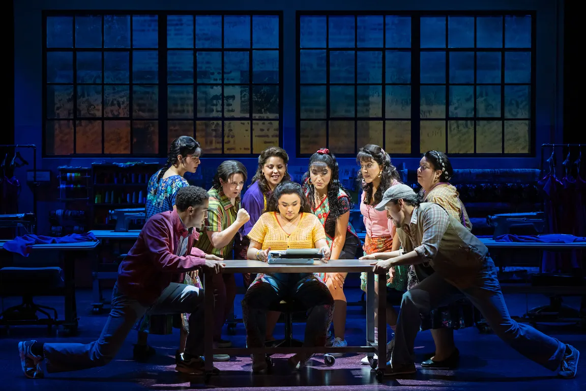 Sure, the show’s style is unapologetically expansive. But this is Broadway, where a broad broad can be broad. Lisa Loomer’s well-crafted script, written with Nell Benjamin and peppered with Spanglish, doesn’t try for innovative plot twists. Its focus is on delivering a conventional story in a satisfying way, and it succeeds by providing opportunities for its vivid cast to shine. Machado, who starred in the 2017 reboot of One Day at a Time, is especially wonderful, displaying a masterful command of audience dynamics. But all of the women in Estela’s factory—Aline Mayagoitia, Florencia Cuenca, Shelby Acosta, Carla Jimenez, Jennifer Sánchez and Sandra Valls—have endearing moments. And the accomplished score, by Joy Huerta and Benjamin Velez, mixes musical theater and pop with appealing Mexican accents; its highlights include two comedic showpieces, “If I Were a Bird” and “Adios, Andrés,” that feel original and fresh.