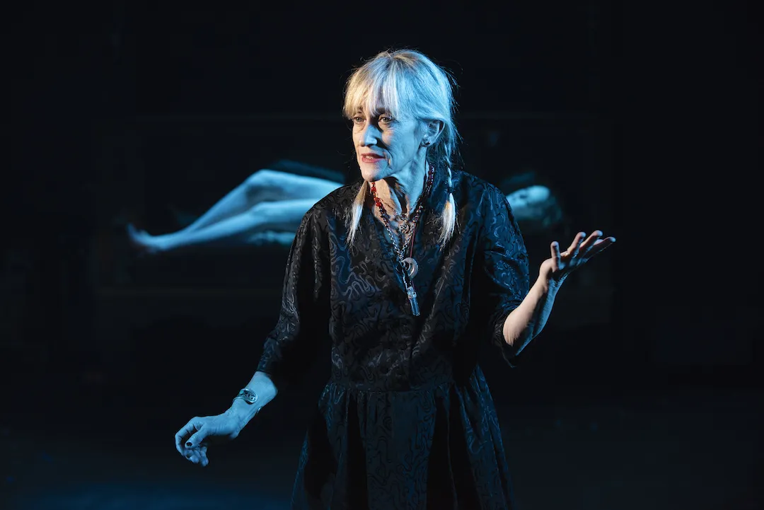 Barron stirs these ingredients and others into a troubling cauldron, and the play can be challenging to take in; its uncorseted structure of scenes and vignettes and near-absence of traditional plot sometimes make it seem like working notes toward a play rather than a finished work. To some extent that is surely by intention, and some scenes that were confusing on first pass clicked into place for me in retrospect. Even so, and despite the production’s persuasively low-key performances, one wonders whether an outside director might have helped shape it to be even more effective, especially in the longer Witch sections. But Barron’s thoughtful ambivalence cuts through the occasional mess. She’s up there under glass for us, spilling her guts.